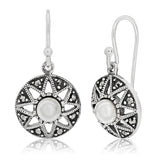 These unique earrings feature marcasite that give a vintage feel. With simulated pearls, the sterling silver earrings are a must-have.