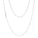 Experience the simple beauty of this Sterling Silver Textured Paperclip 60 Gauge 60cm Chain. Offering a classic paperclip design in durable sterling silver, this chain is crafted to withstand everyday use. Experience the timeless beauty of this paperclip chain, made to gracefully wrap around the neck. Featuring an easy clasp and boasting a length of 60cm, this silver chain is a beautiful and hassle-free addition to any outfit.