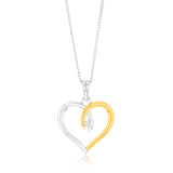 Sterling Silver Two Tone Cubic Zirconia Fancy Open Heart Pendant