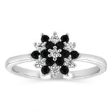 Sterling Silver White And Black Cubic Zirconia Fancy Flower Ring
