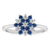 Sterling Silver White And Blue Cubic Zirconia Fancy Flower Ring