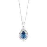 Sterling Silver White And Sapphire Cubic Zirconia Pear Shaped Pendant
