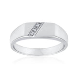 With a slim pattern set with 3 Diamonds, this Sterling Silver ring gives a classic Signet ring look for the gentleman's attire.