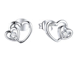 Styled in shining sterling silver and set with zirconia stones, these double heart shaped stud earrings are a must-have in your jewellery collection. With two open silver hearts, this piece catches the light perfectly as you move and turn. With its gorgeous symbolism, this piece is a true expression of love and solidarity.