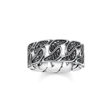 This Thomas Sabo ring is perfect for both men and women. The ring has been forged from sterling silver and set with oxidised black cubic zirconia that adds a stunning contrast to the sterling silver. Complete the look by pairing it with your favourite silver piercing or bracelet.