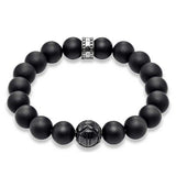 Add edge to your look with this stunning Thomas Sabo Rebel Sterling Silver Matt Obsidean Carved Bead 19cm Bracelet. Crafted in Thomas Sabo quality, this bracelet consists of matte black obsidean with a single carved bead, that gives the bracelet a unique twist. Complete with the iconic Thomas Sabo bead, this bracelet is beautiful in its simplicity. Wear this bracelet on its own or pair it with other bracelets for a curated look.