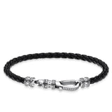 A new take on classic elegance, the Rebel Black Leather Bracelet from Thomas Sabo is made from a black leather weaving with a sterling silver parrot clasp for a sophisticated touch. The clasp is finely detailed with blackened silver, for a stylish finish.