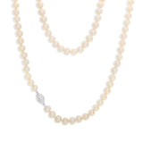 Flowing with sophistication, this white freshwater strand 60cm pearl necklace is an ideal match for all your outfits. Giving the iconic look of the twenties, pearl necklaces are the most fun and carefree way to add glitz and glamour to any look. The box clasp locking both the end of the neckpiece enhances its appearance fabulously.